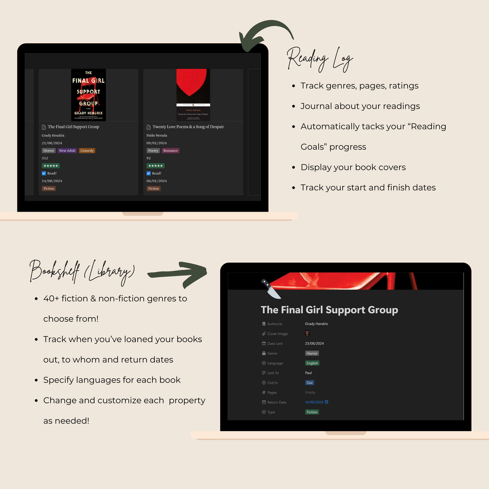 • Diverse Reading Log: Choose from over 40 genres to organize your reads.