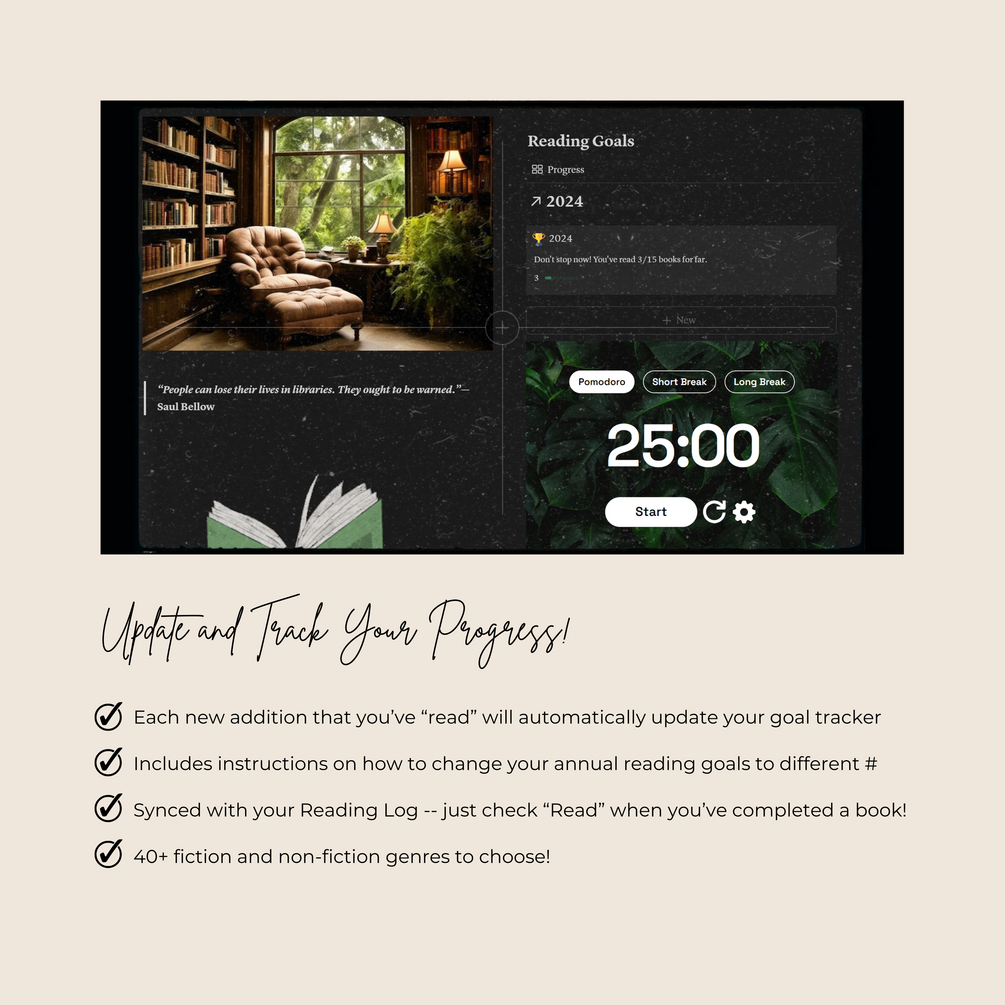 • Flexible Goal Setting: Easily update your annual reading goal.